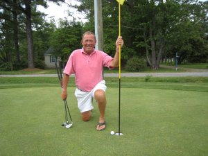At the second hole of the golf course here at The Tides Inn, Lyn came this close to his first hole in one!!
