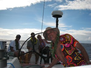 Since Morpheus has historically been a dry boat on passages, cocktail hour caught the provisioning officer off guard. But, we did scrounge enough beer so that we could each have one Coors Light each day for most of the passage. Mike and Deb relished these beers, savoring the delicious “hiss” upon opening their daily beer. But the beer ran out. Horror. But, the provisioning officer came up with the goods and broke out the left over hard stuff from Hawaii. Since mixers were scarce, we had to improvise and come up with our own boat drinks. Jim’s clever way of making ice in a zip lock was critical to the success of the boat drink experiment. Mike’s “Morpheus Martini” of gin and Ginger Root was pretty much a flop, especially compared to the Rum and Pepsi Jim and Deb were enjoying. Rum, Pepsi and all sodas being gone today, Deb came up with “Pink Vodkas”! Vodka, ice and pink lemonade! Actually, very good. Since we are now out of Vodka, tomorrow we will try “Pink Gins”