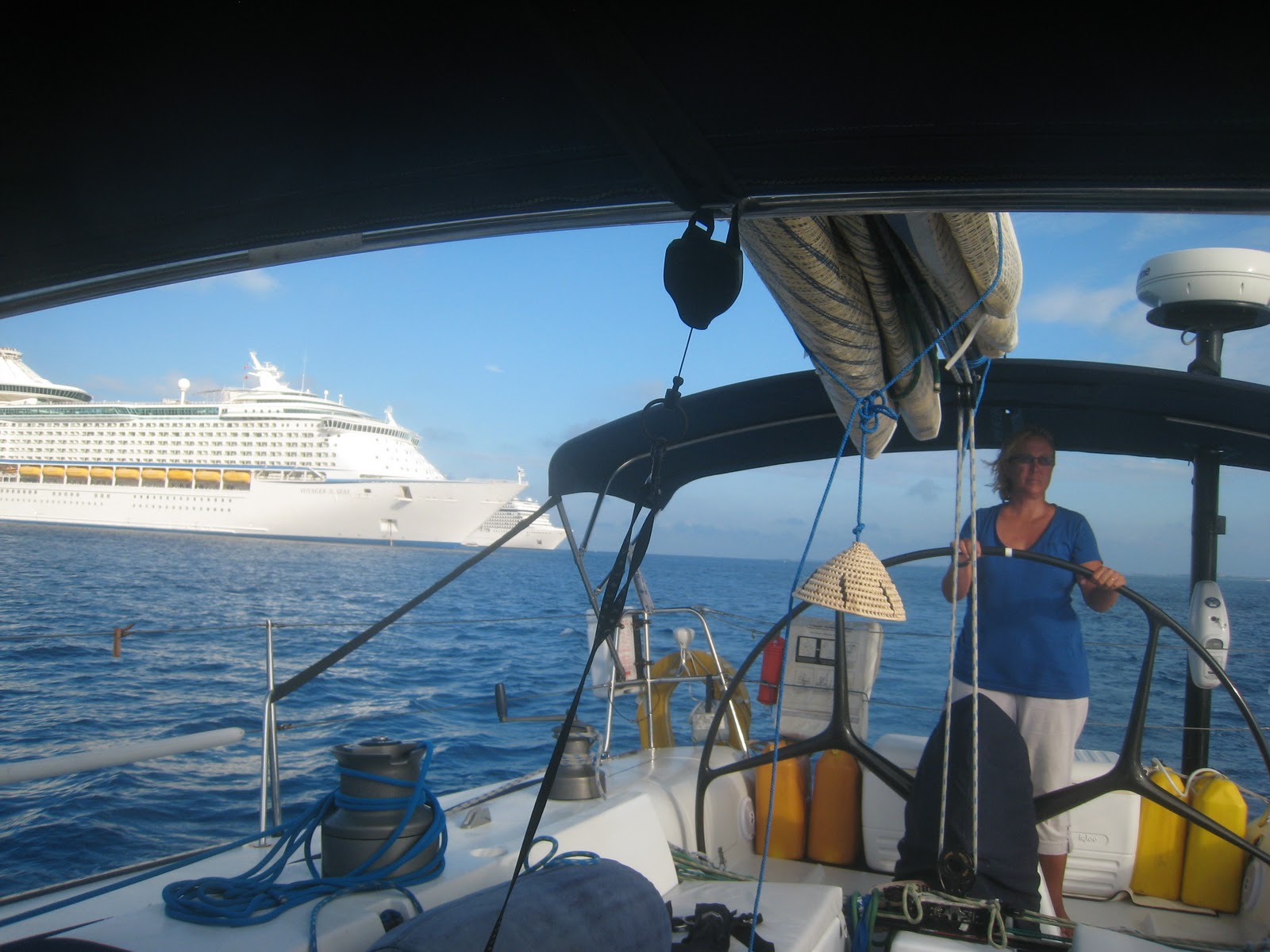 As with most trips on Morpheus she likes to arrive in the wee hours of the morning and this trip was no exception anchored around 0400. After a short nap we awoke and found four cruise ships anchored within a mile of us. How did they sneak in when we were sleeping?