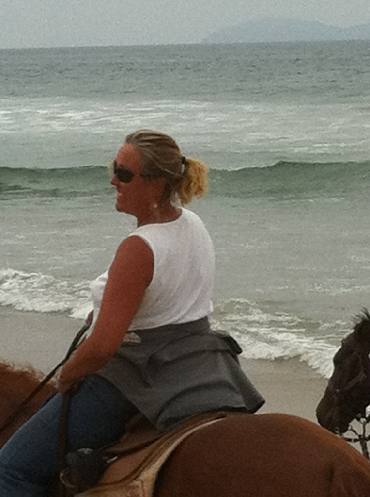 Today was my sister Sally’s surprise birthday party. We spent the morning riding on the beach and the afternoon at a party with friends and family. What a great day! All that was missing was my husband and my dog!