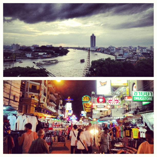So far, Bangkok has been basically the polar opposite of Japan. The roads are chaotic and unorganized, filled with motorbikes and three wheeled taxis called Tuk-tuk's that seem to think the road lanes are more of a suggestion then a rule. But more then anything, it's cheap! My room on the main strip of khao San road is 180 baht a night ($6), to put this in perspective it was 400 yen ($5) to rent a train station luggage storage locker for four hours. Road side carts in Thailand sell meals for 40 baht (~$1), in Japan it was at least 8 or nine dollars for lunch and more for dinner.