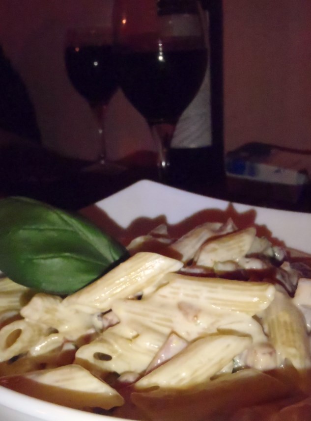 We started with garlic bread, olive & tomato brucheta, and grilled porcini mushrooms. I was the only one that did not order the carbonara, opting instead for a pasta dish recommended by our server.