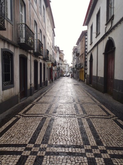 First stop was at a cafe directly across from the Marina Ponta Delgada. Their “Happy Hour” special was a selection of tapa-like appetizers and a medium beer for 2.50 euros. A good deal. We each ordered a beer and tapas plate, then ordered another beer and tapas plate. Among the tapas shared – octopus salad, shrimp, conch salad, lima beans, snails, new cheese, and French fries. It was all good. Perhaps an indicator of how hungry I was – I forgot to document any of the dishes.