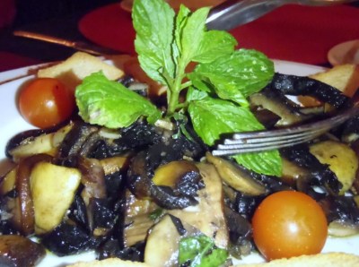 I’ll never remember the name of the dish, but fresh mint was among the herbs and spices. Dinner was accompanied by several bottles of good Portuguese red. Everything was truly excellent – prepared and presented with care. After accepting our effusive compliments Philip the chef offered us a coffee / coffee bean infused liqueur of his own concoction. Exactly the kind of thing you never want to have more than one when finishing a long night of eating and drinking.