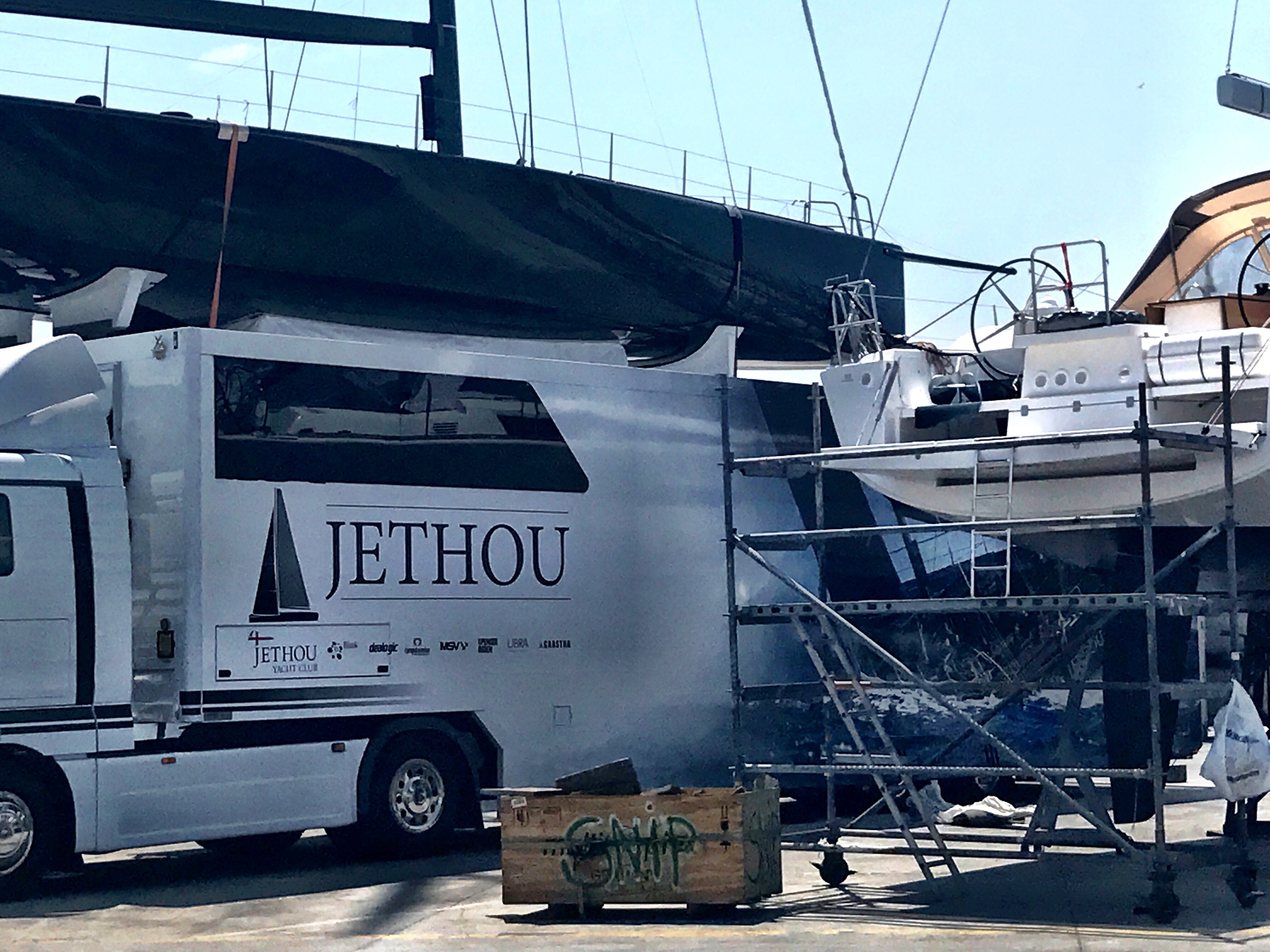 I’ve seen plenty of boat trailers, containers, storage sheds, etc. But a boat semi truck and trailer? Come on! It’s bigger than the boat!!