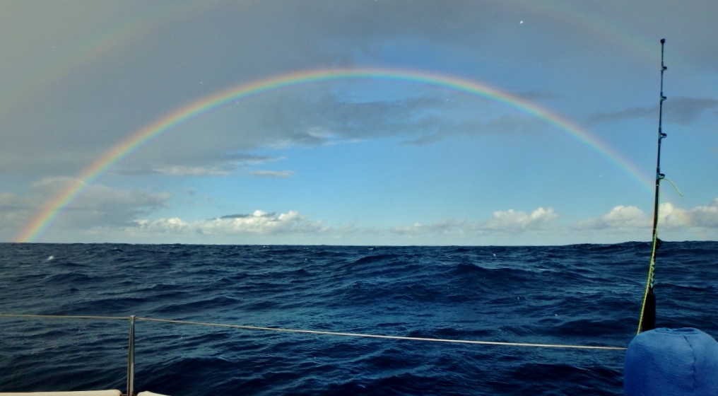 | Double Rainbow on Starboard Beam with Fishing Rod |
