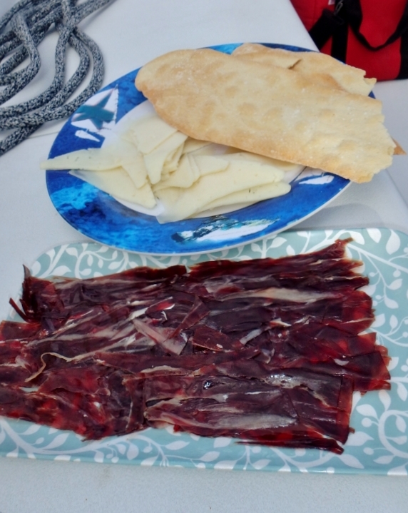 Milk and Cereal for Breakfast. Shirley’s Meat Loaf Sandwiches for Lunch. Iberian Ham and Manchego Cheese for afternoon snack. Choice of Pork Curry or Meat Loaf for dinner. – mw