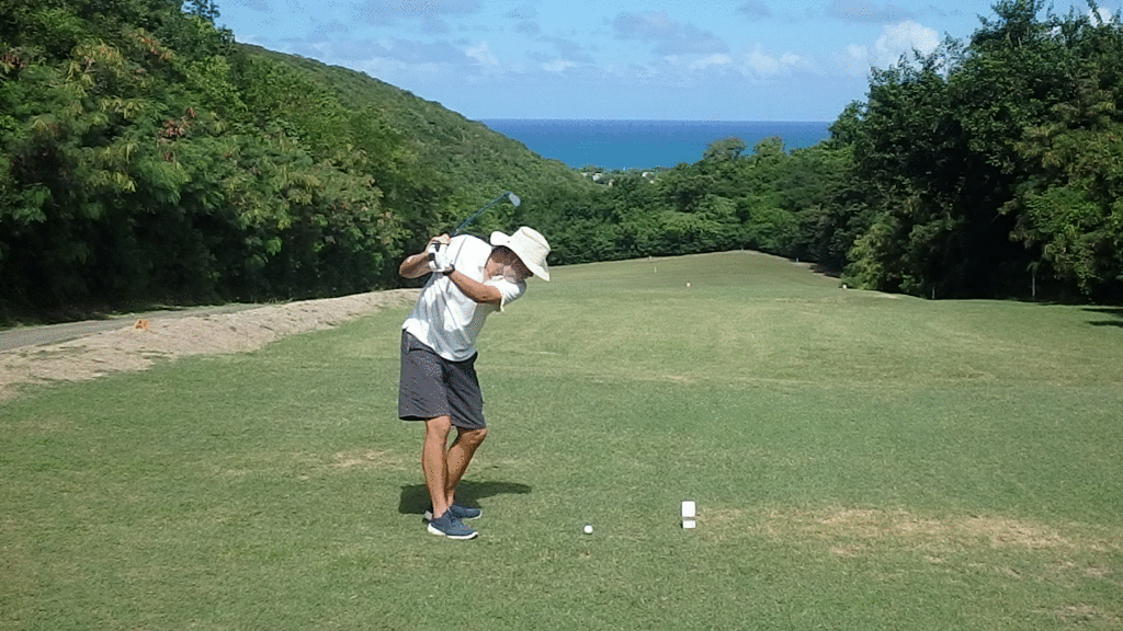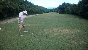 Our tee time was at 10:00, which means we were playing the heat of the Caribbean day. I was reminded of the Noel Coward song that “Only Mad dogs and Englishmen go out in the midday sun”. OTOH, Doug and I pretty much had the course to ourselves for most of the round.