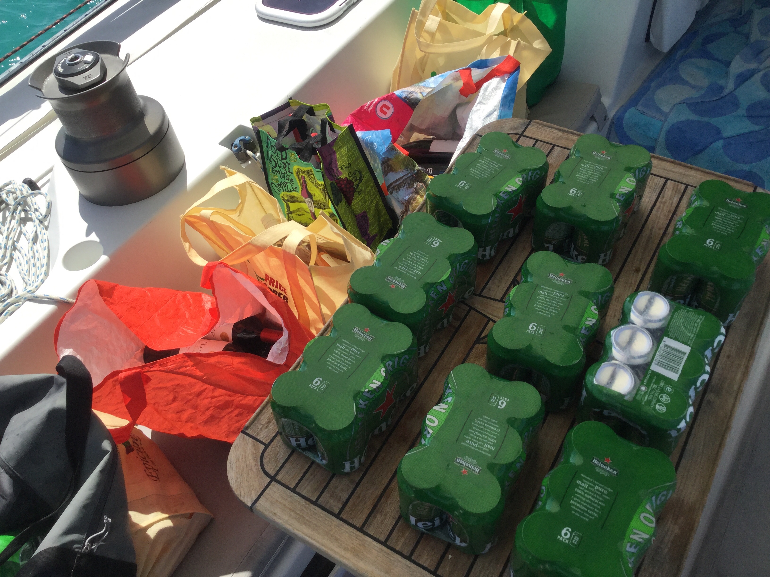 • Debs other plan, to disinfect and “debug” all bottles and cans before stowing onboard, was also a success. Not sure about the virus 🦠, but many bugs met their doom while floating behind Morpheus in mesh bags.