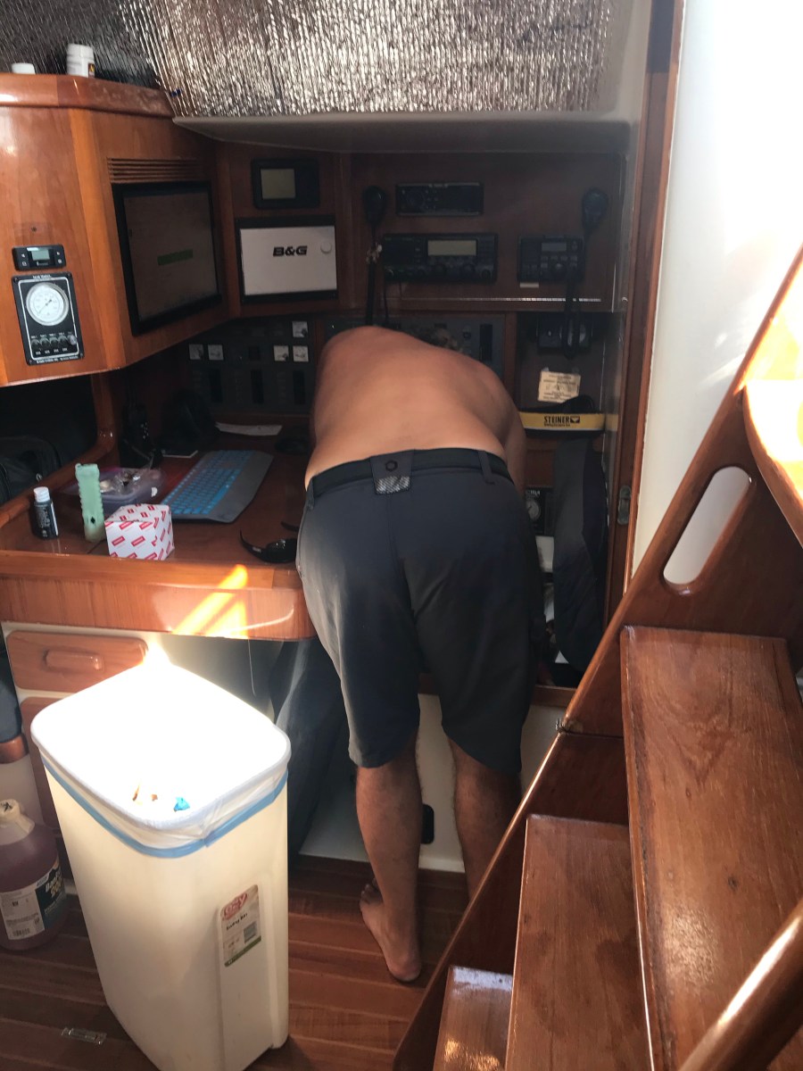 Another day of scrubbing the decks and floor boards, buffing the mast, pickling the water maker, and servicing the engine. It’s a chore putting the boat to bed for maybe until next May. Who knows? Jim and I are moving slow!